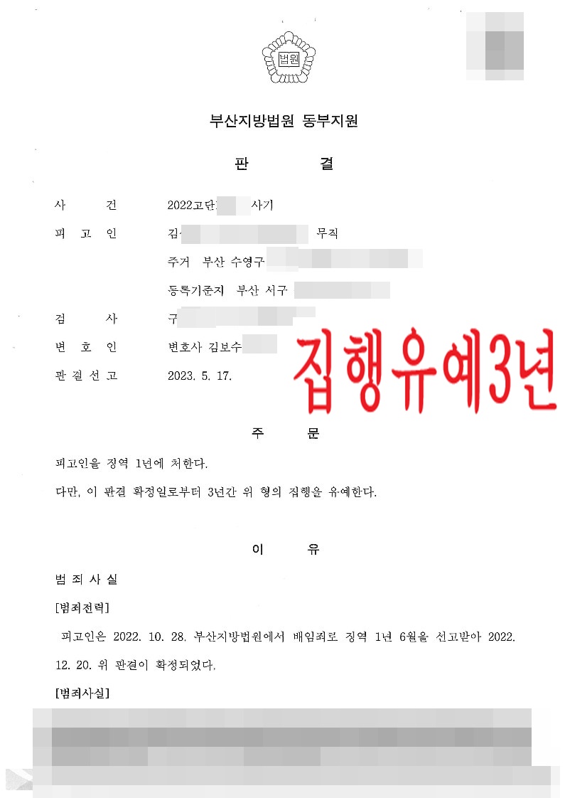[형사] 사기 - 집행유예 3년