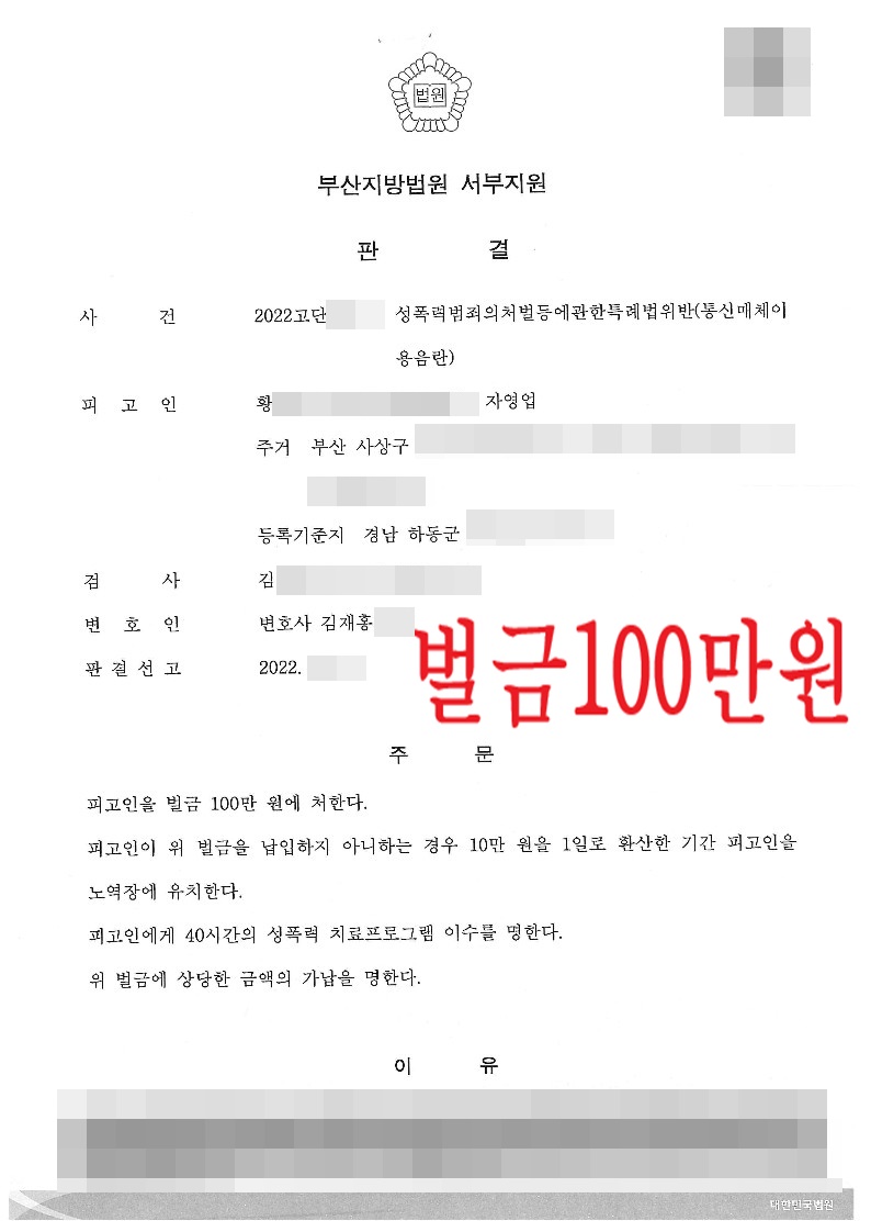 [형사] 통신매체이용음란(통매음) - 벌금형