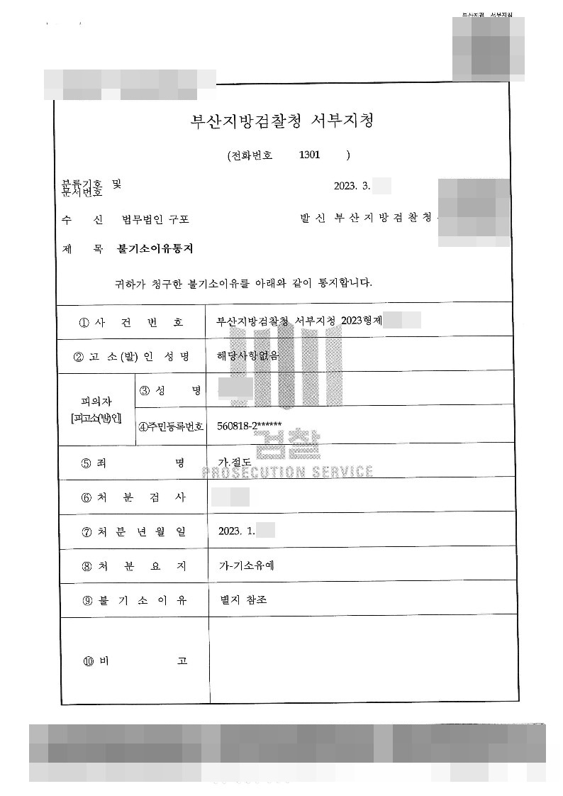 [형사] 절도 - 불기소이유서