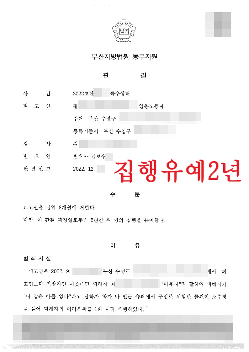 다만, 이 판결 확정일로부터 2년간 위 형의 집행을 유예한다.