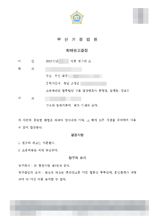 이혼 - 화해권고결정문
