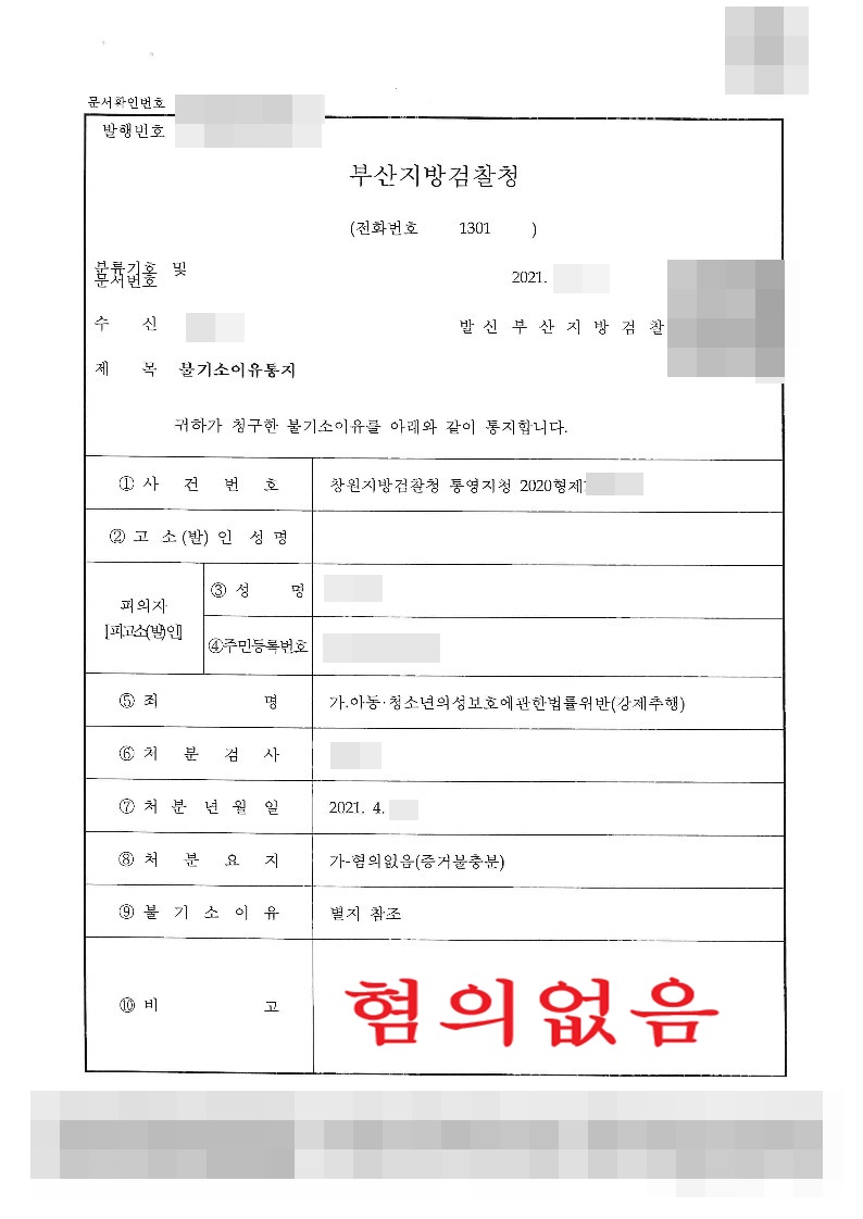 피의자는 증거 불충분하여 혐의없다.