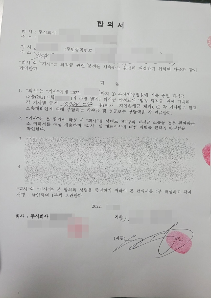 [민사] 임금체불 퇴직금 청구소송 - 합의