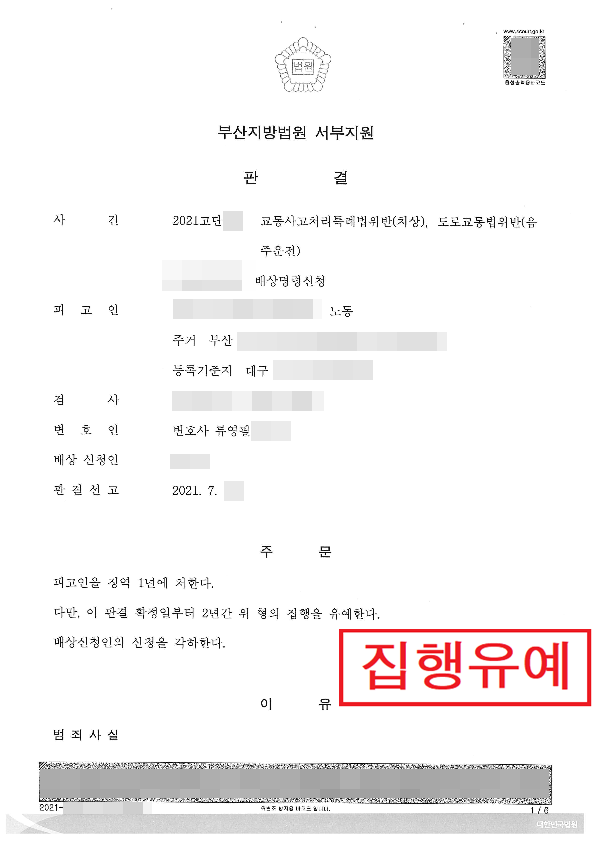 도로교통법위반(음주운전)-집행유예2년