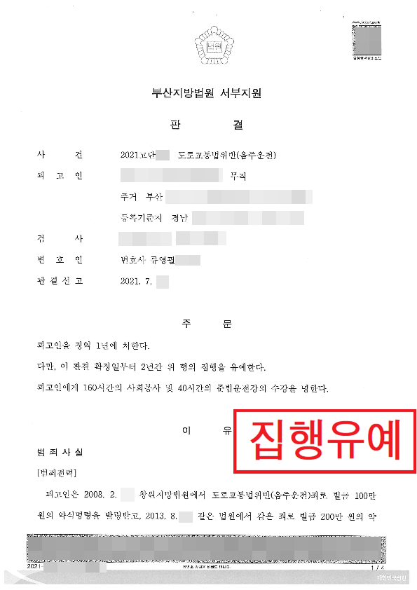 도로교통법위반(음주운전)-집행유예2년