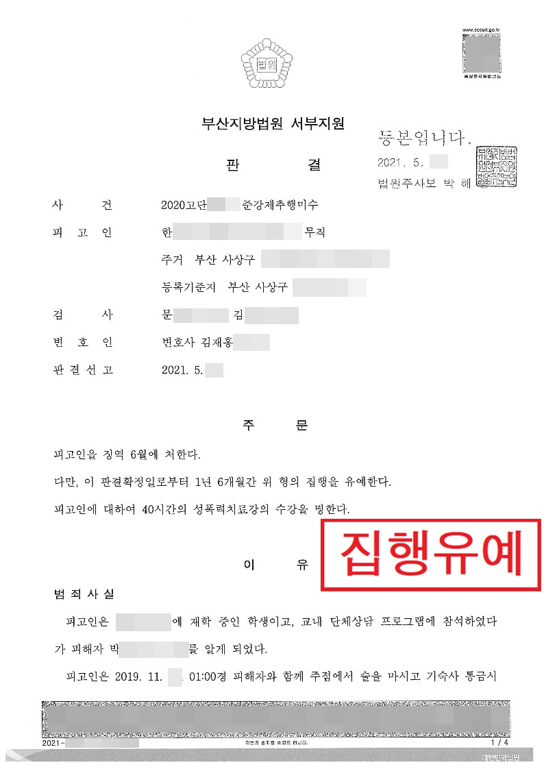 다만, 이 판결확정일로부터 1년 6개월간 위 형의 집행을 유예한다.
