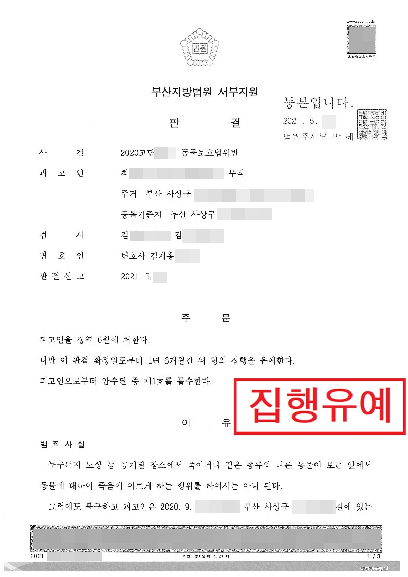 동물보호법위반-집행유예1년6개월