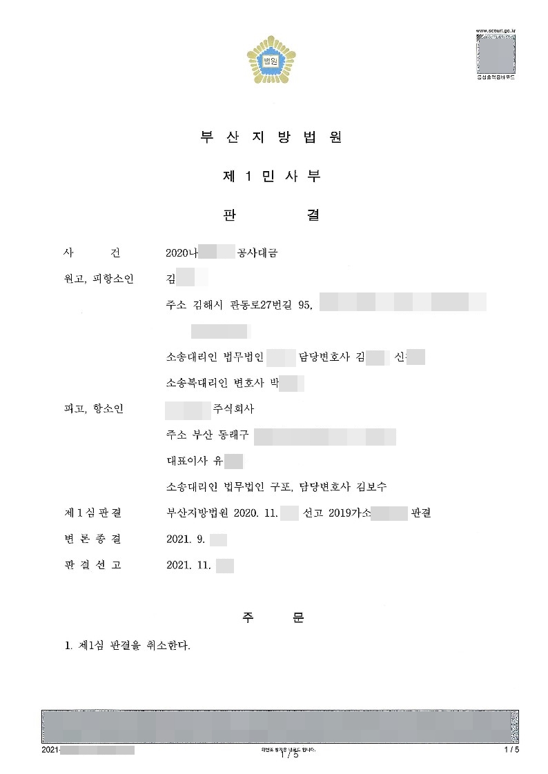 [민사] 공사대금-원고청구기각(승소) 페이지 정보 최고관리자 작성일21-12-17 목록 본문 사건명 : 공사대금 피고인의변호인 : 김보수변호사 <판결> 공사대금 - 원고청구기각(승소) 목록