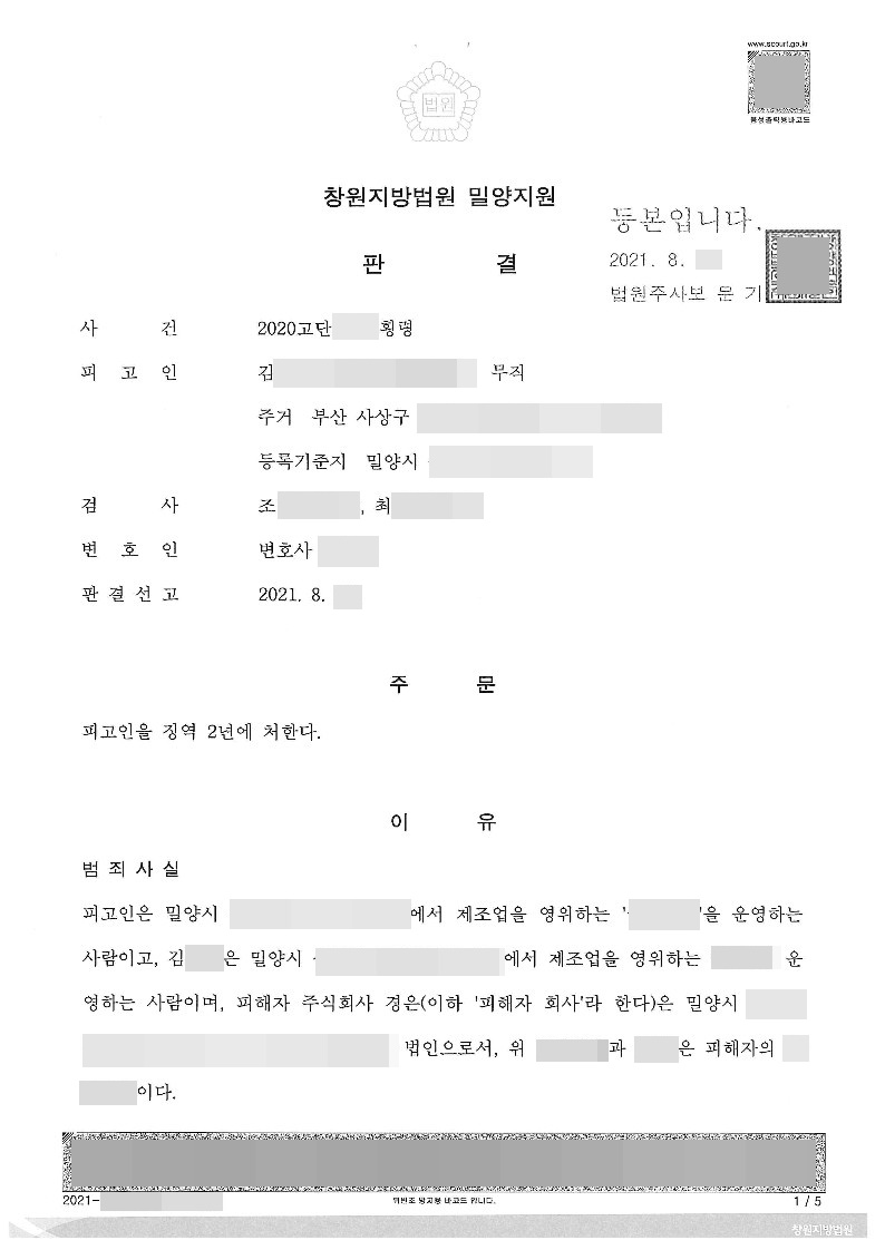 [형사] 횡령죄-승소(징역2년)