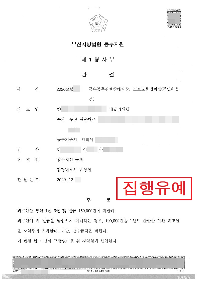 특수공무집행방해치상-집행유예3년