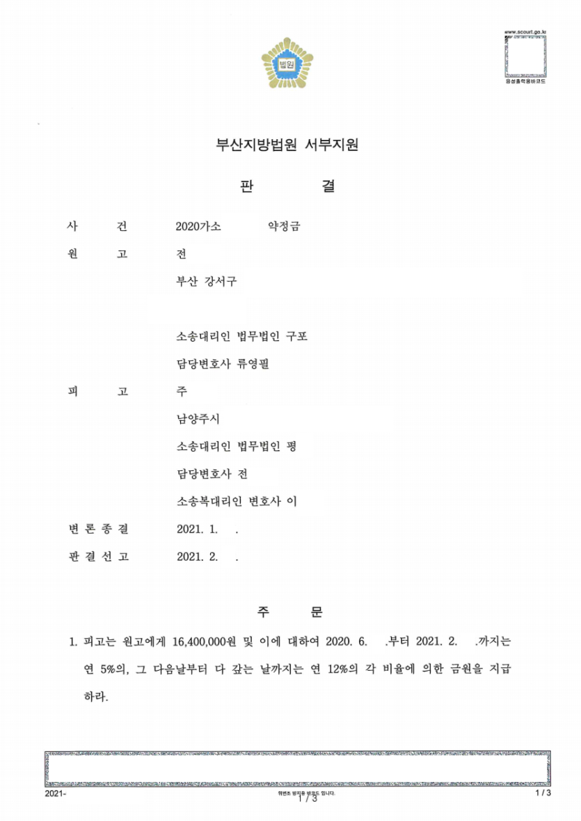 [민사] 약정금 - 청구인용