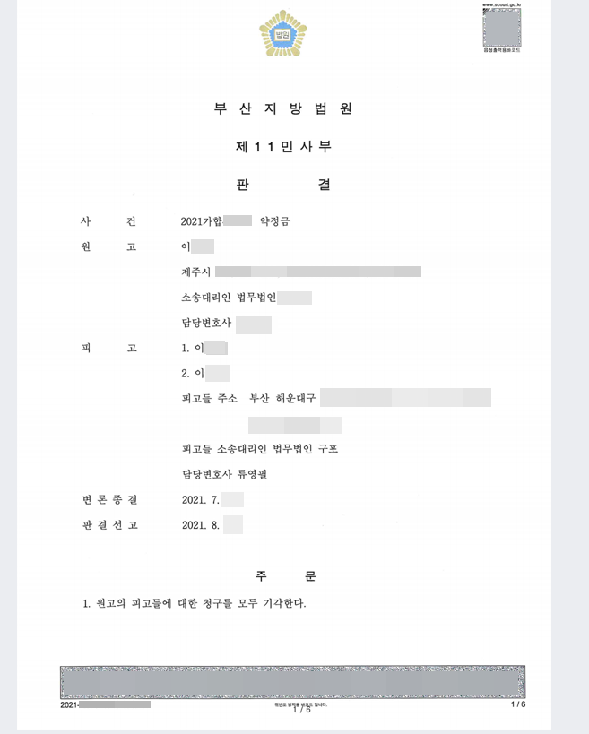 [민사] 약정금-원고청구기각