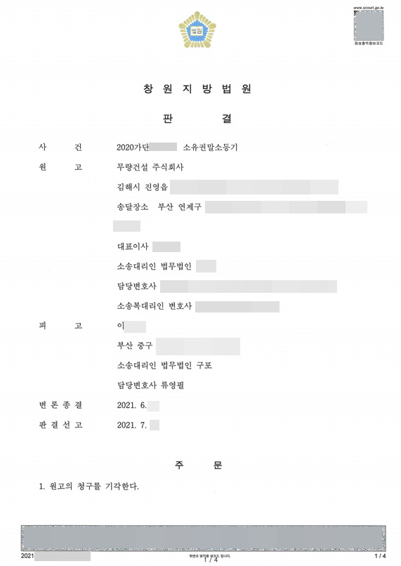 이후 담당변호사는 변론과정에서 원고 주장에 모순이 있고, 그 주장에 따르더라도 이를 뒷받침할 아무런 증거가 없다는 점을 이유 있게 주장하였고, 관련 증거를 제출하면서 치열하게 변론하였습니다. 이후 재판부는 피고의 주장을 모두 받아들여 원고의 청구를 기각하는 판결을 선고하였습니다.
