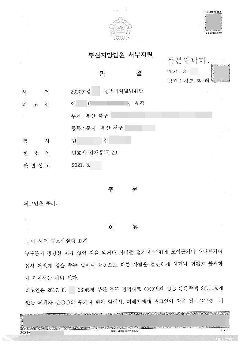 [형사] 경범죄처벌법위반-무죄
