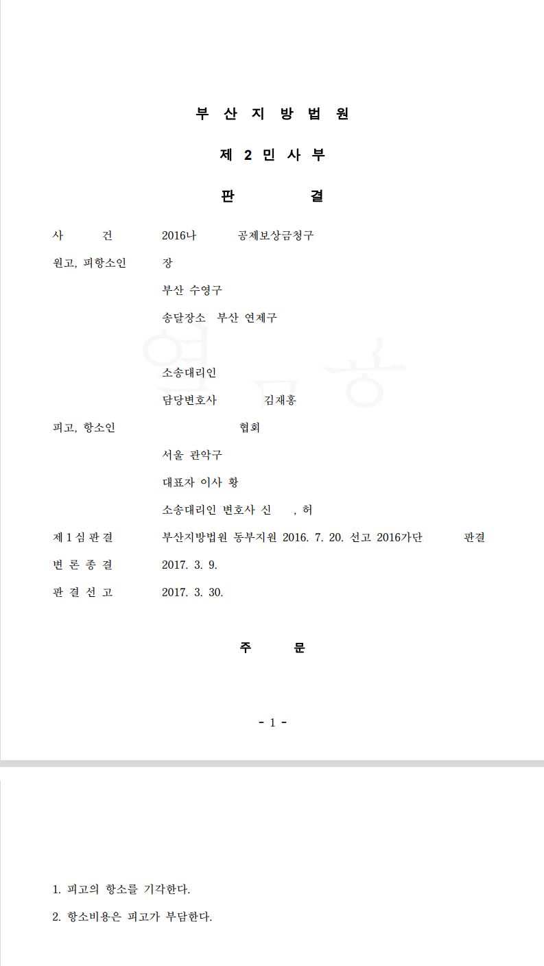 [민사] 공제보상금 - 항소기각
