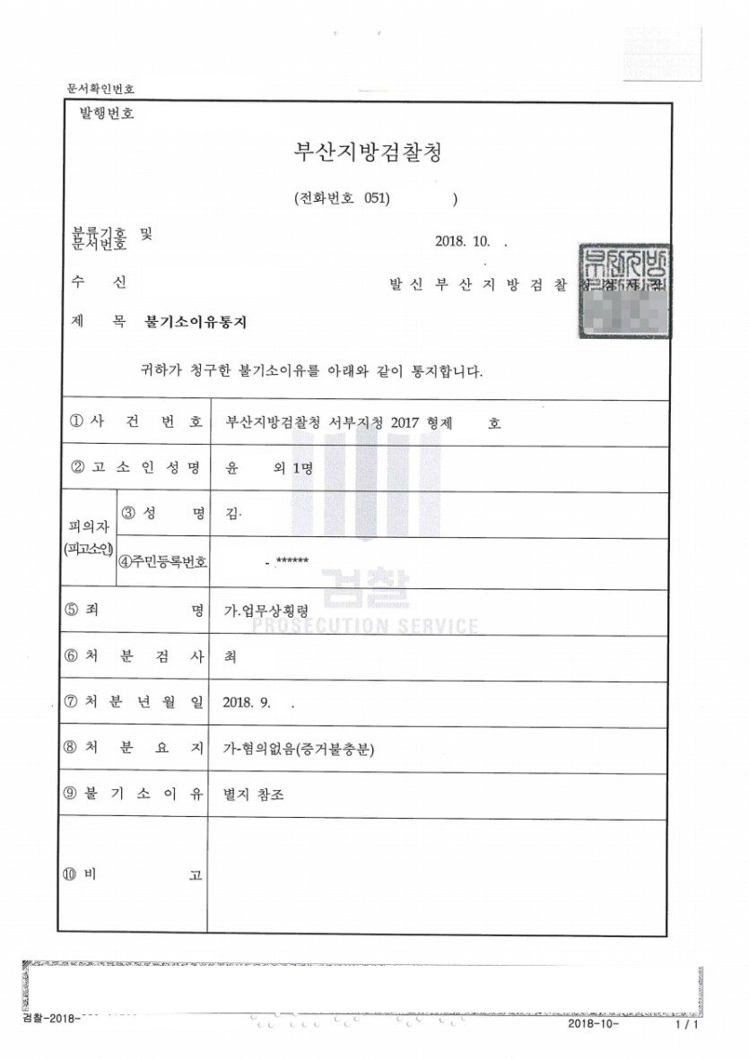 [형사] 업무상횡령 - 불기소처분(혐의없음)