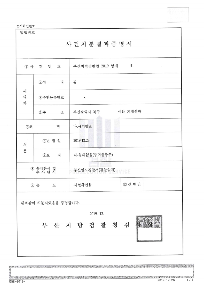 변호인의 주장을 받아들인 검찰은 의뢰인에게 불기소(혐의 없음)처분을 하였습니다.