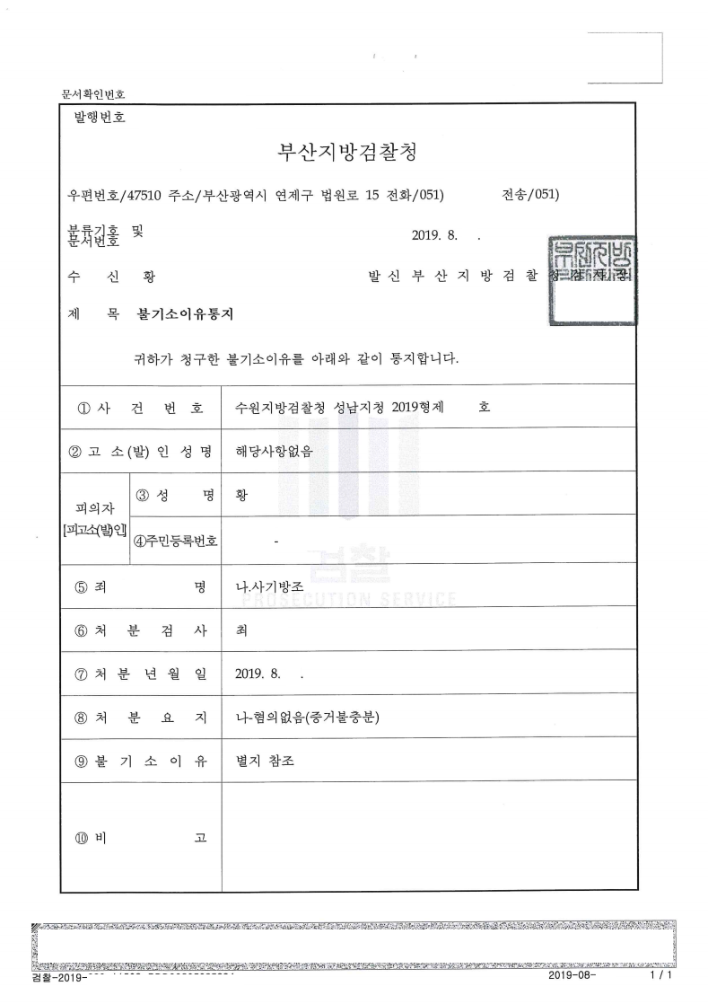 [형사] 사기 방조 (보이스피싱) - 불기소처분(혐의없음)