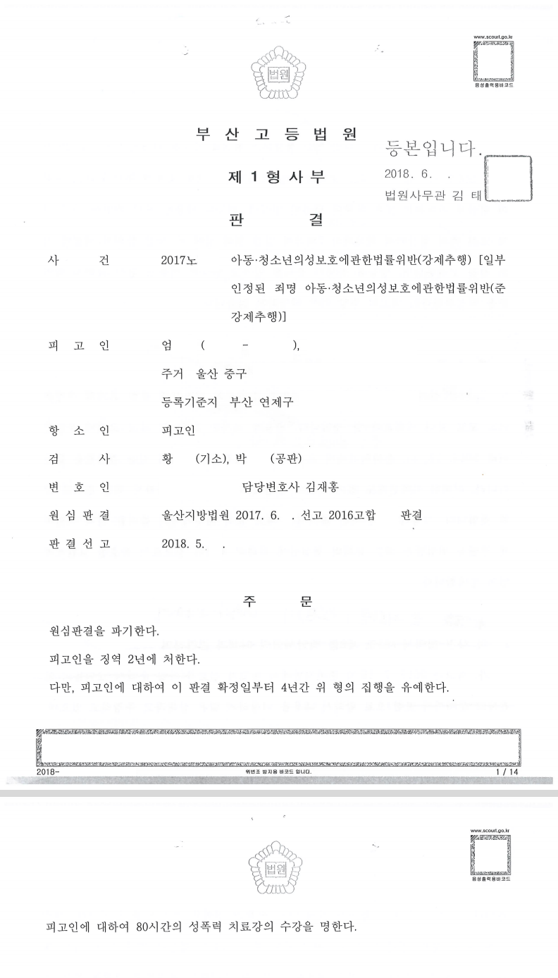 [형사] 클릭해서 더 보기 => 아동청소년의성보호에관한법률위반(강제추행) - 집행유예