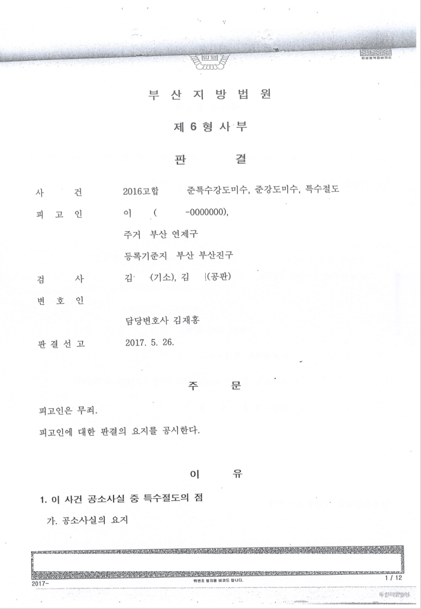 결국 피해자, 목격자 및 담당 수사관에 대한 증인신문을 거쳐 위 모든 공소사실에 대하여 무죄판결을 받을 수 있었고, 항소심에서도 검사의 항소를 기각하는 판결을 받아 확정되었습니다.