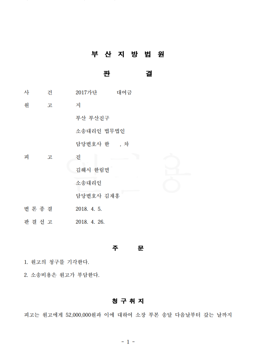 결국 담당재판부에서 피고의 항변을 모두 받아들여 원고의 청구를 기각하는 판결이 선고되었습니다.