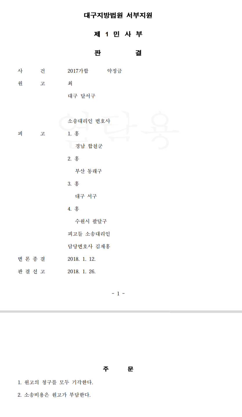 [민사] 약정금 - 원고청구기각
