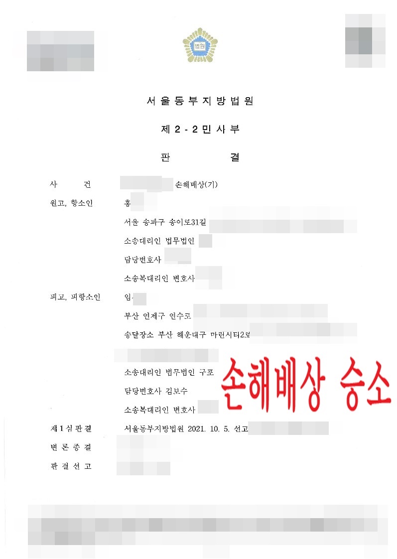 2년을 넘게 계속된 소송에서 법원은 의뢰인에 대한 모든 청구를 기각하였고, 의뢰인은 상대방에 대하여 소송비용을 받으며 긴 고통에서 벗어날 수 있었습니다.