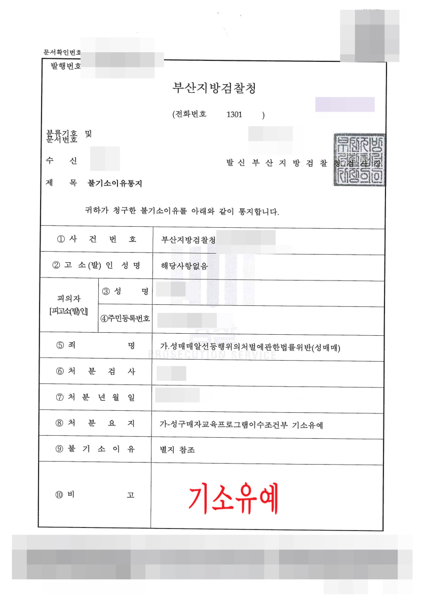 결국 검찰은 의뢰인 및 법무법인 구포 변호인의 의견을 적극 수용하여 의뢰인에게 처벌 전과가 남지 않는 기소유예 처분을 내렸습니다.