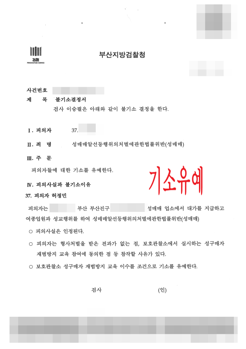 [형사] 성매매알선등 행위에관한법률위반 - 기소유예
