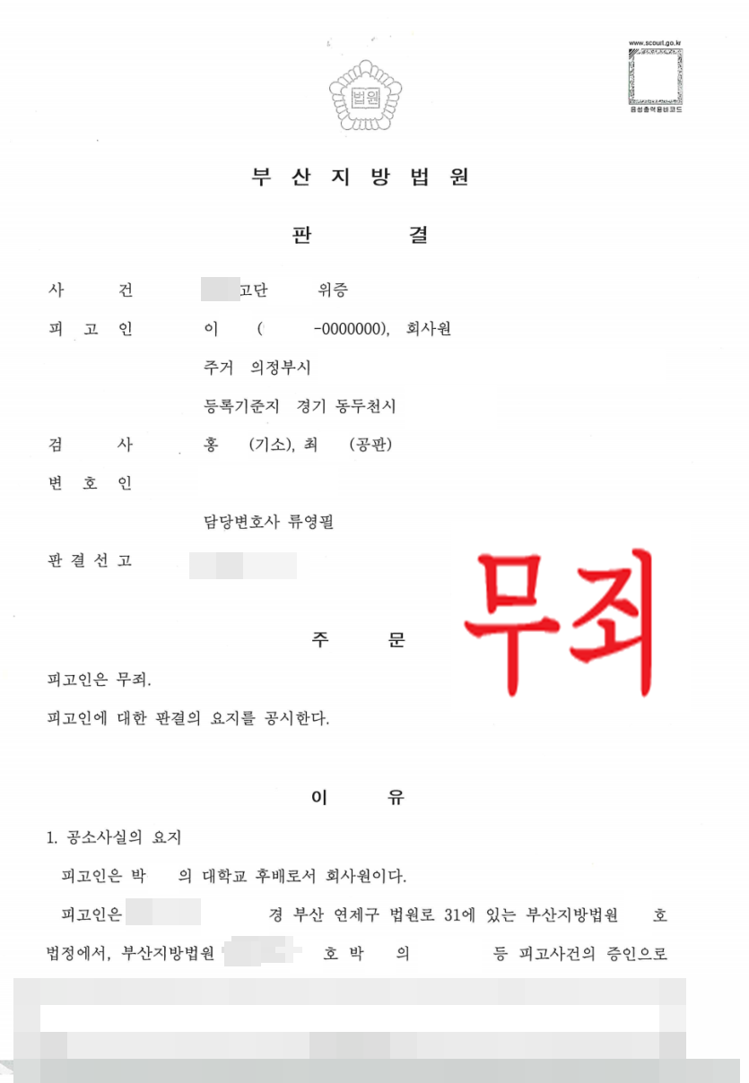 [형사] 위증죄 소송 - 무죄