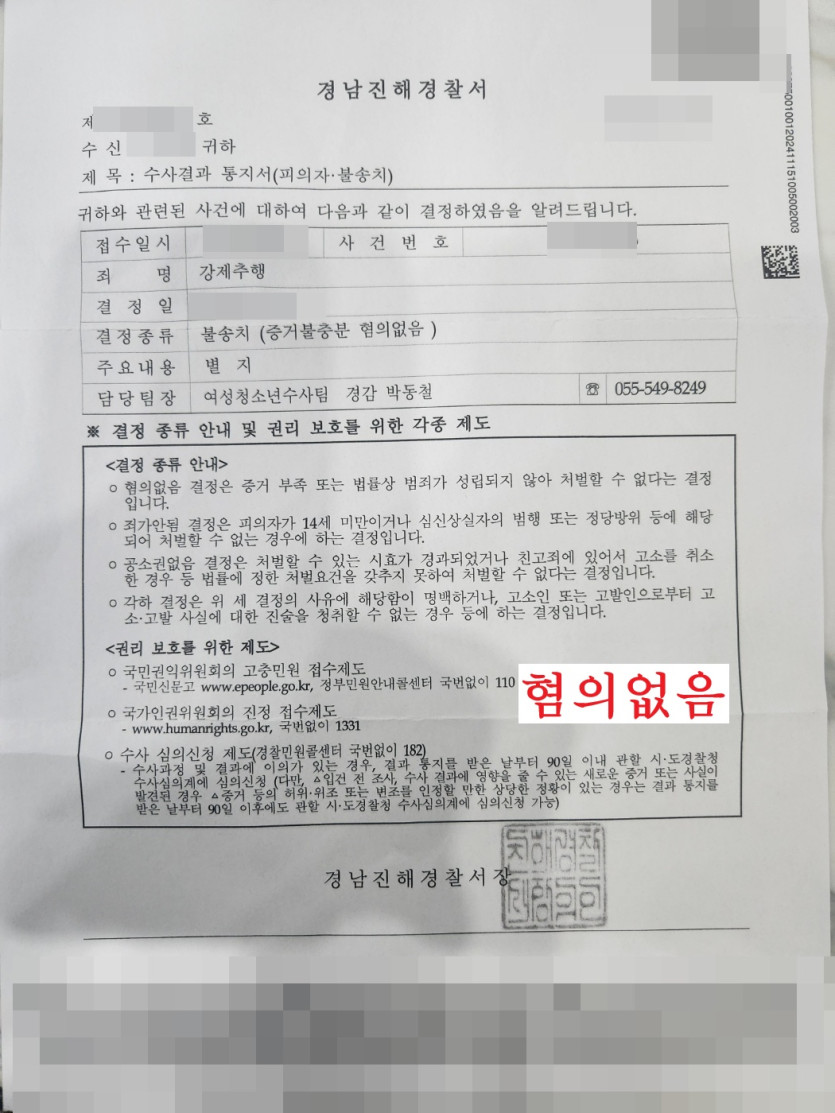 [형사] 강제추행 - 무혐의(혐의없음)