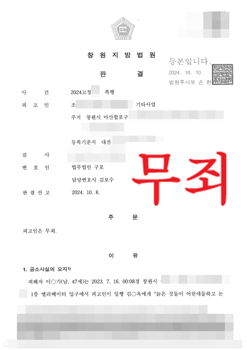 너무나도 억울했던 의뢰인은 법무법인 구포를 통하여 정식재판을 청구해 무죄를 다투게 되었습니다.