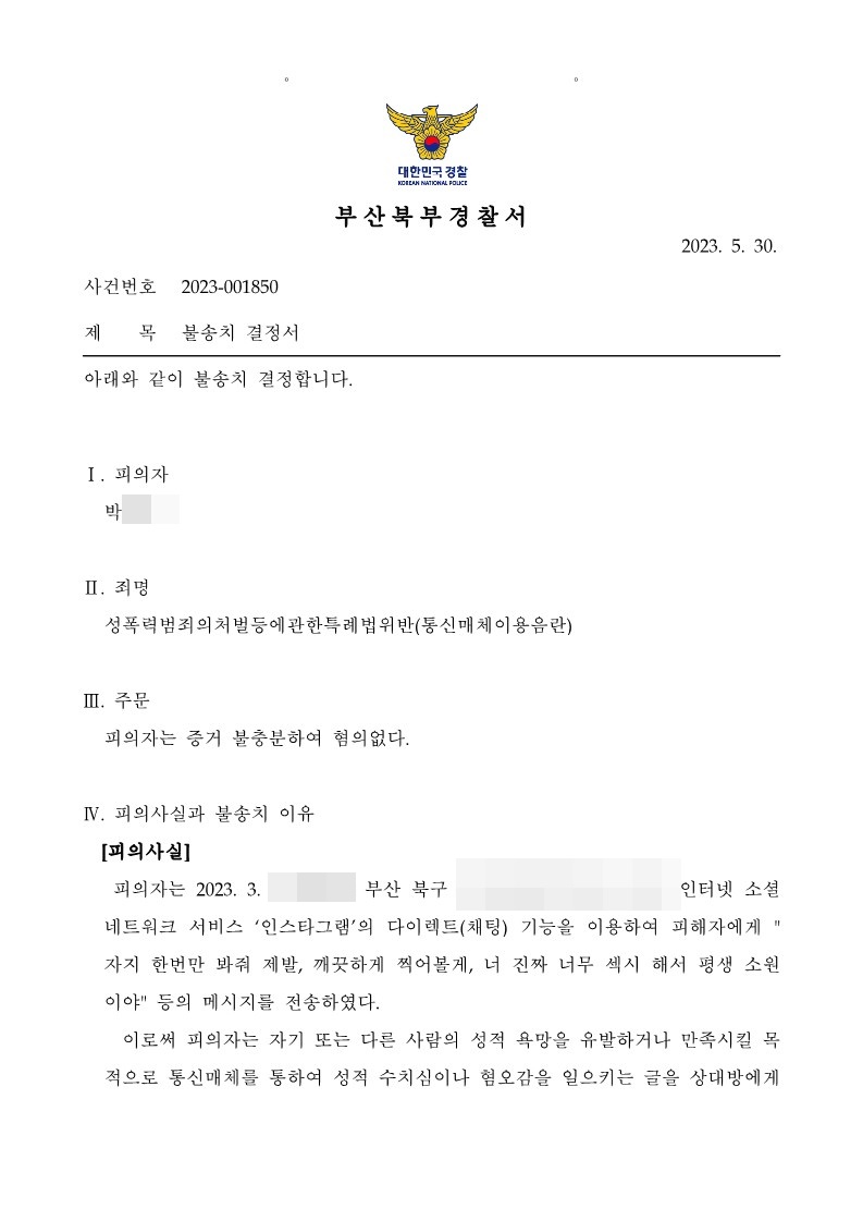 [형사] 통신매체이용음란죄(통매음) - 혐의없음(증거불충분)