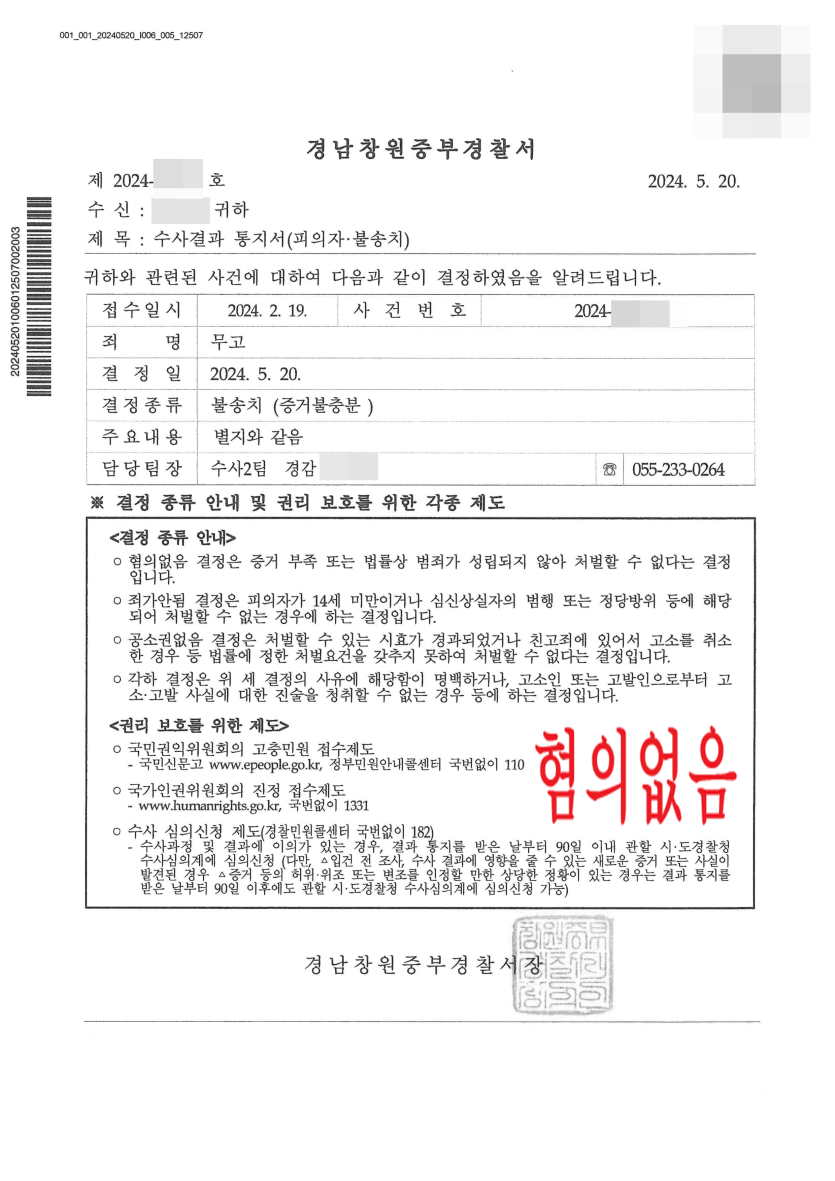 법무법인 구포 담당변호인은 무고와 위증에 관한 법리를 기초로 하여, 의뢰인의 신고는 경험한 사실을 그대로 신고한 것이며, 법정에서의 증언 역시 기억에 기초한 것이었음을 주장하였던 바, 수사기관으로부터 불송치결정(혐의없음)을 받을 수 있게 되었던 사건입니다.