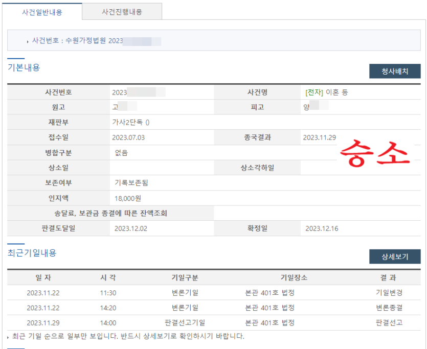 [이혼∙가사] 이혼소송 - 인용(승소)