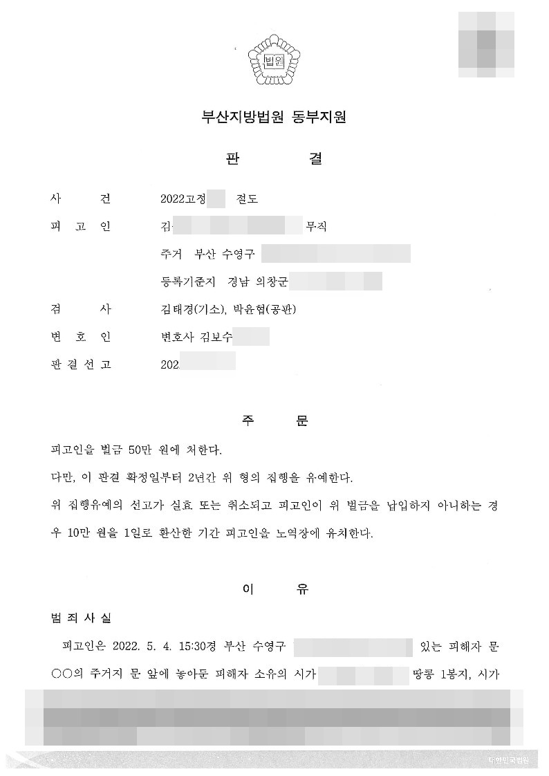 [형사] 절도죄 - 집행유예2년