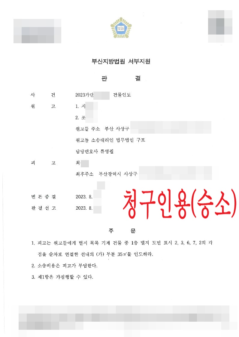 건물인도 - 청구인용(승소)
