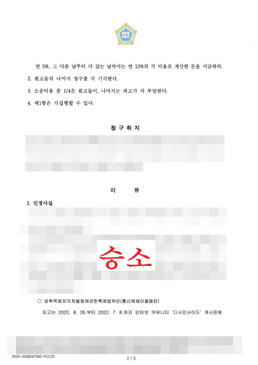 특히 의뢰인이 상대방의 악질적인 행위로 인하여 다니던 직장마저 그만둘 수밖에 없었고, 가족들의 삶이 피폐해지게 된 과정 등을 구체적으로 밝히면서 상대방의 불법행위 크기 및 정도가 매우 중대하다는 사실을 최대한 부각하였습니다.