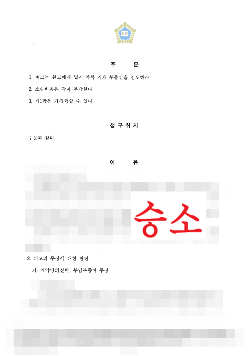 결국 재판부는 의뢰인의 주장을 모두 받아들여 의뢰인의 청구를 전부 인용하는 판결을 선고하였습니다.