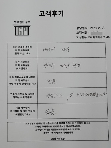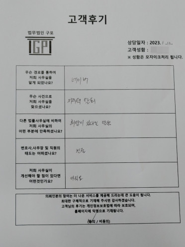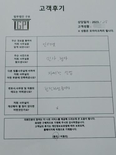 클릭해서 더보기 => <민사(민사소송 방문상담)> 의뢰인분의 실제 고객후기