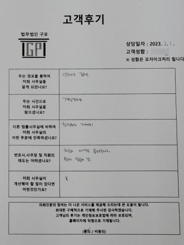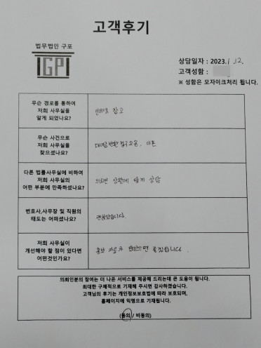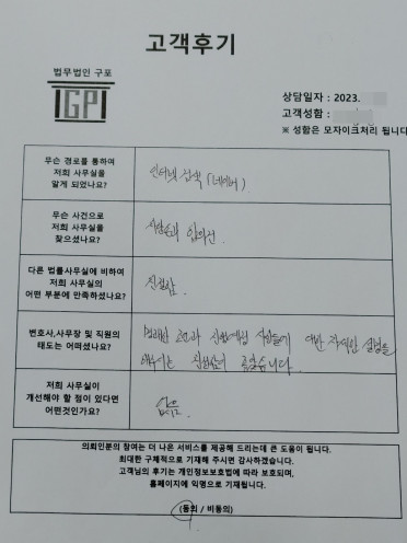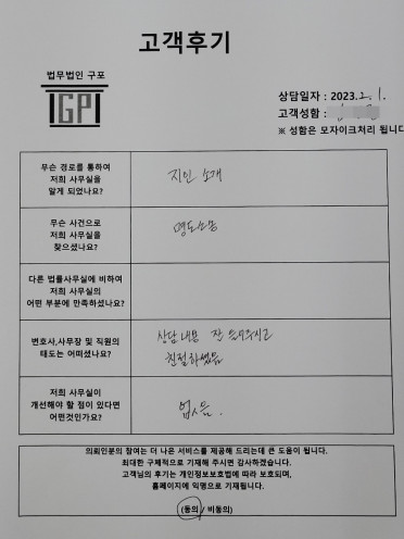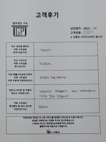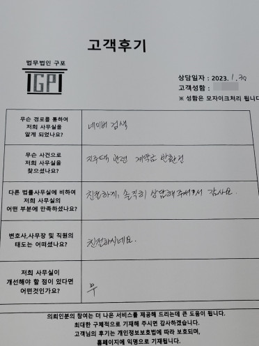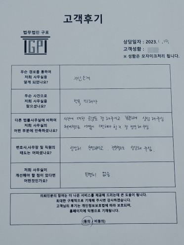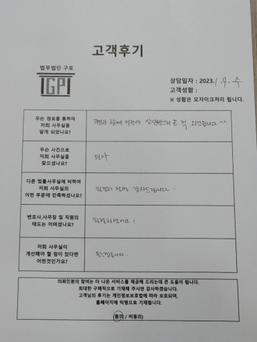 클릭해서 더보기 => 형사(차량손괴 합의 방문상담) 의뢰인분의 실제 고객후기