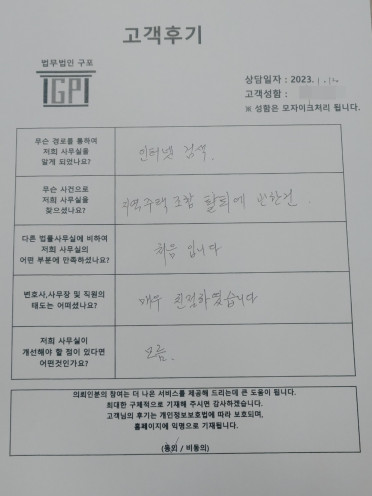클릭해서 더보기 => 민사(대여금,이혼 방문상담) 의뢰인분의 실제 고객후기
