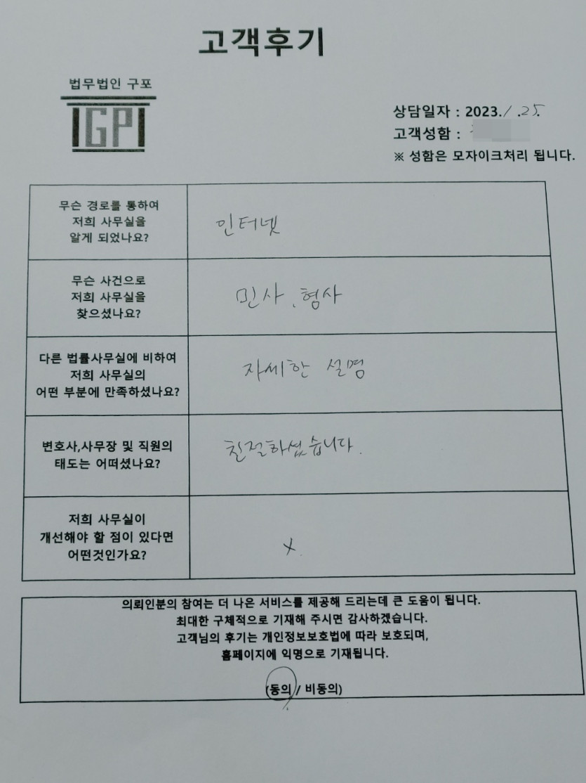 클릭해서 더보기 => 형사,민사(사기고소 방문상담) 의뢰인분의 실제 고객후기 페이지 정보 최고관리자 작성일23-01-27 목록 본문 안녕하세요. 법무법인 구포입니다.사기고소 관련되어 방문해주셨던 만큼원만하게 해결이 되시기를 바라겠습니다.감사합니다. 목록