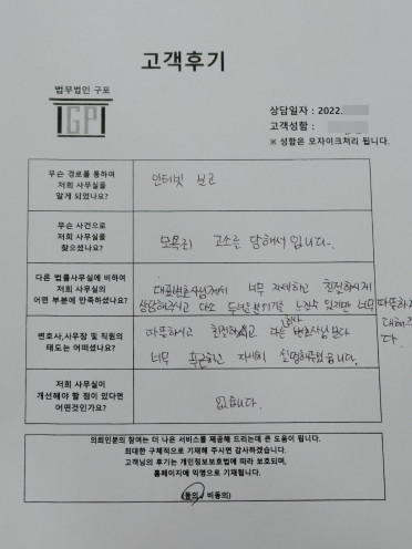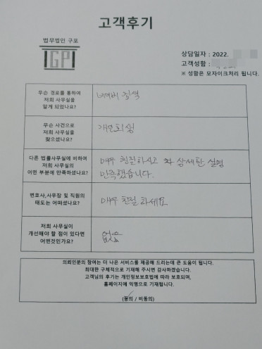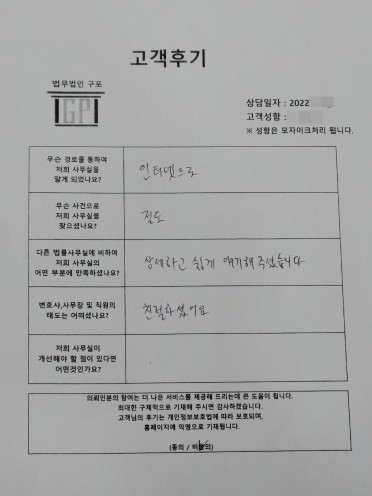 클릭해서 더보기 => 형사(사기,절도죄 방문상담) 의뢰인분의 실제 고객후기