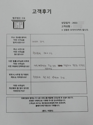 클릭해서 더보기 => <형사(학교폭력,학폭 방문상담)> 의뢰인분의 실제 고객후기