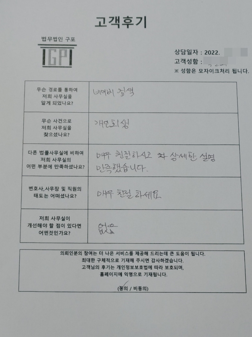 클릭해서 더보기 => (개인회생 방문상담) 의뢰인분의 실제 고객후기