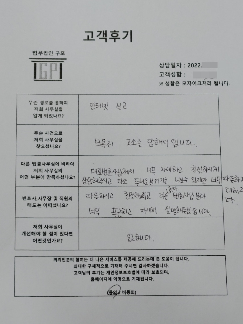 클릭해서 더보기 => <형사(모욕죄 고소 방문상담)> 의뢰인분의 실제 고객후기