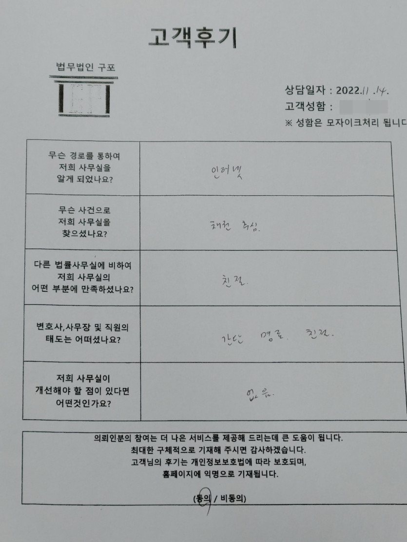 클릭해서 더보기 => 민사(채권추심 방문상담) 의뢰인분의 실제 고객후기