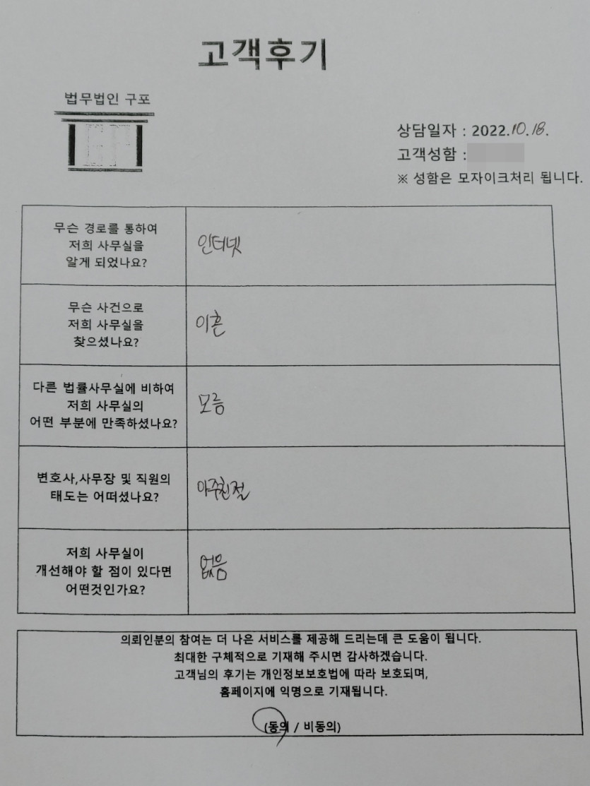 클릭해서 더보기 => < 민사 (이혼,상간녀소송 방문상담) > 의뢰인분의 실제 고객후기