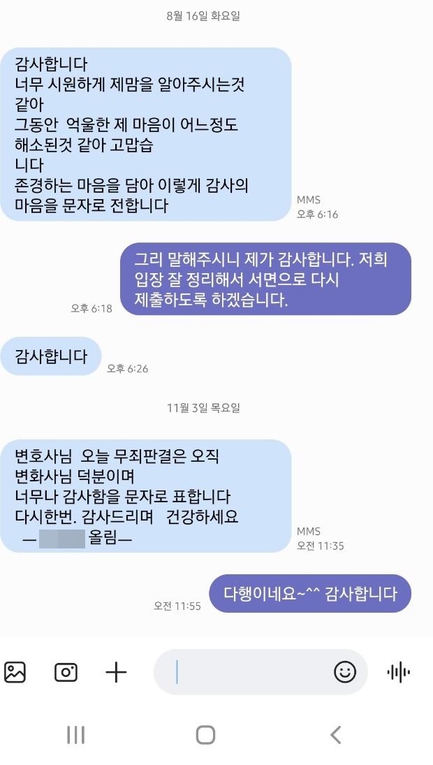클릭해서 더보기 => <형사> 사기_무죄판결 (감사의 문자메시지 후기)